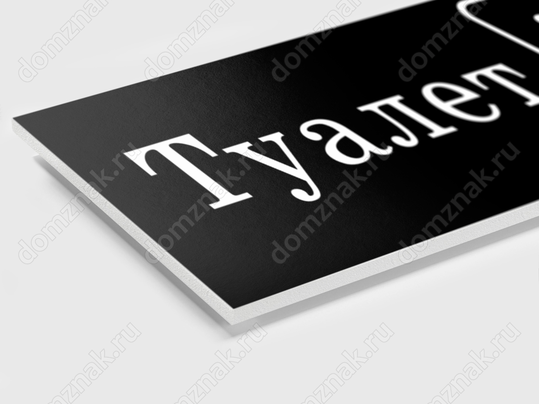 Табличка «Туалет» изготавливается из пластика ПВХ толщиной 3 мм.