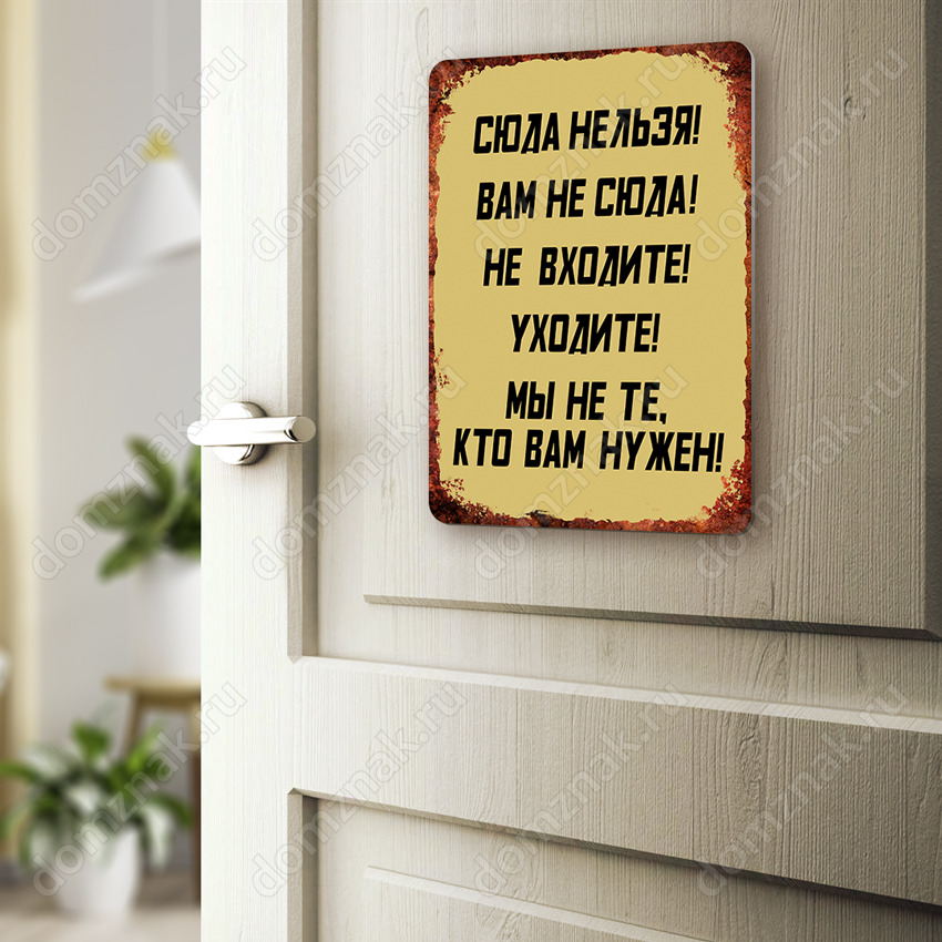 Табличка «Сюда нельзя! Вам не сюда! Не входите! Уходите! Мы не те, кто вам нужен!»