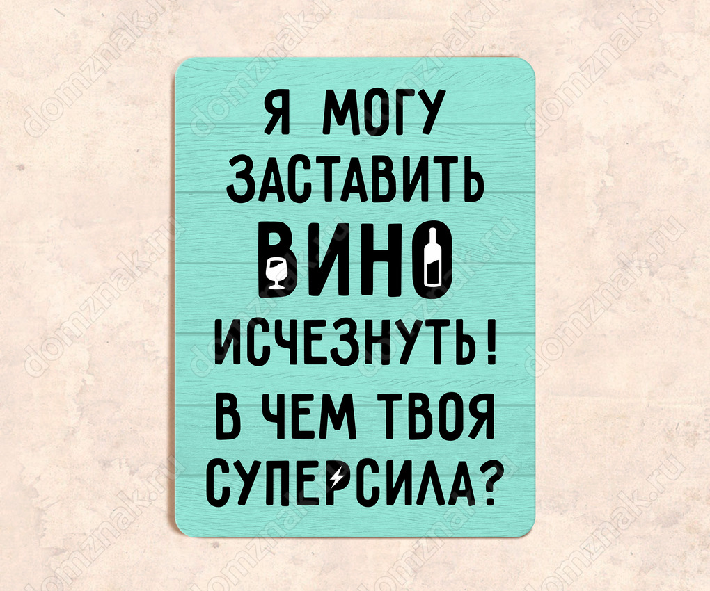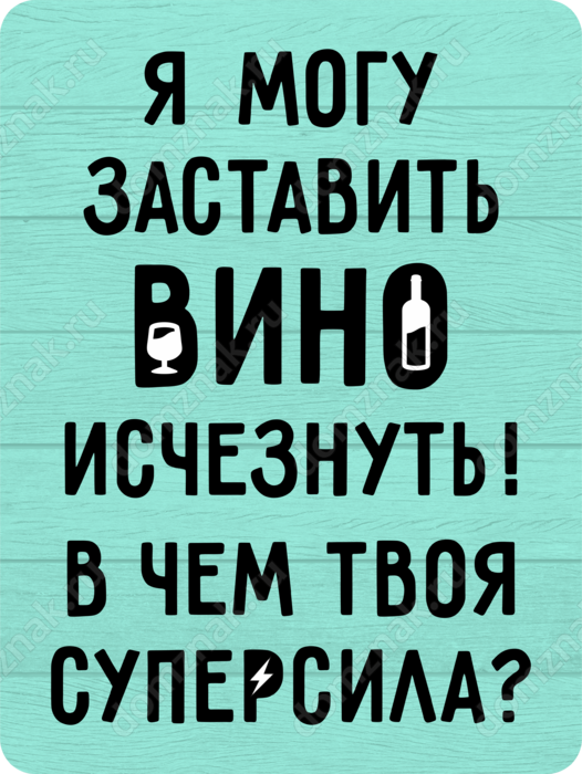 Табличка «Я могу заставить вино исчезнуть! В чем твоя суперсила?»