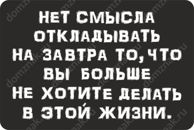 Табличка «Нет смысла откладывать на завтра то, что вы больше не хотите делать в этом жизни»
